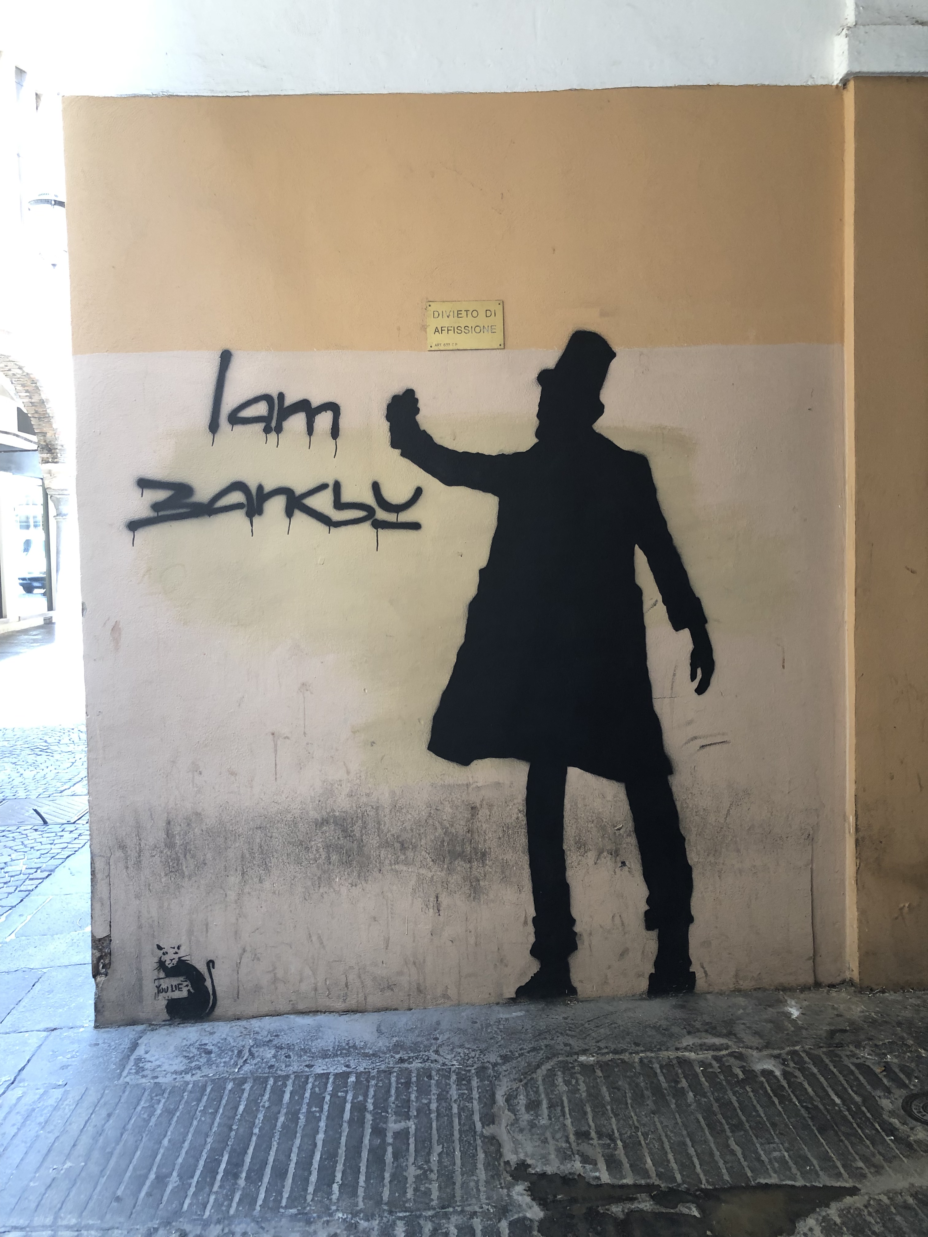 We came across a graffiti picture that purported to come from Banksy! but if you look at the rat in the bottom corner it admits that it probably isn’t.