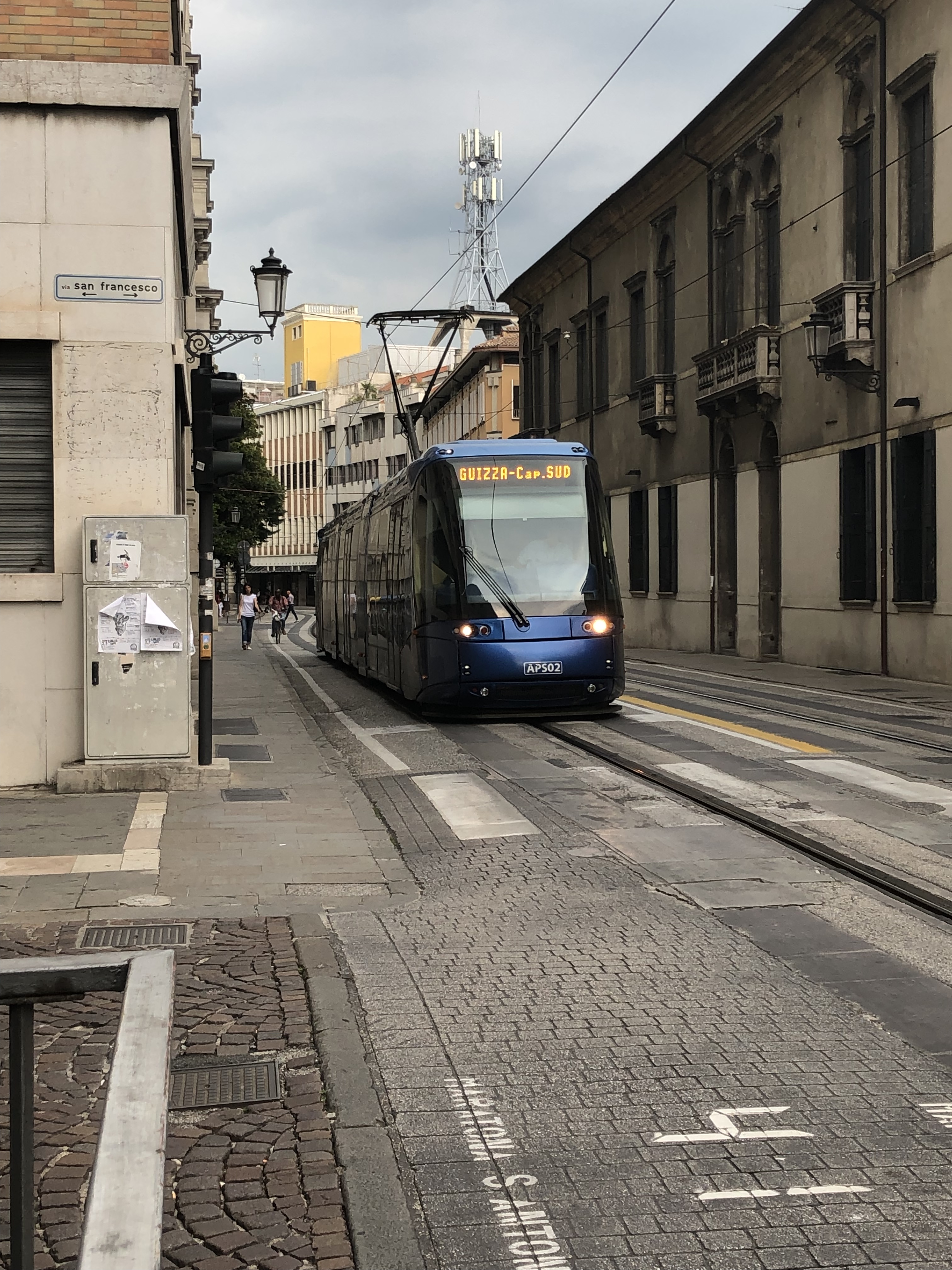 We decided at this point to head straight back to the car. As we were walking back we encountered a Padua tram. It ran on one track and had normal tyres like a bus. We had never seen one like it.