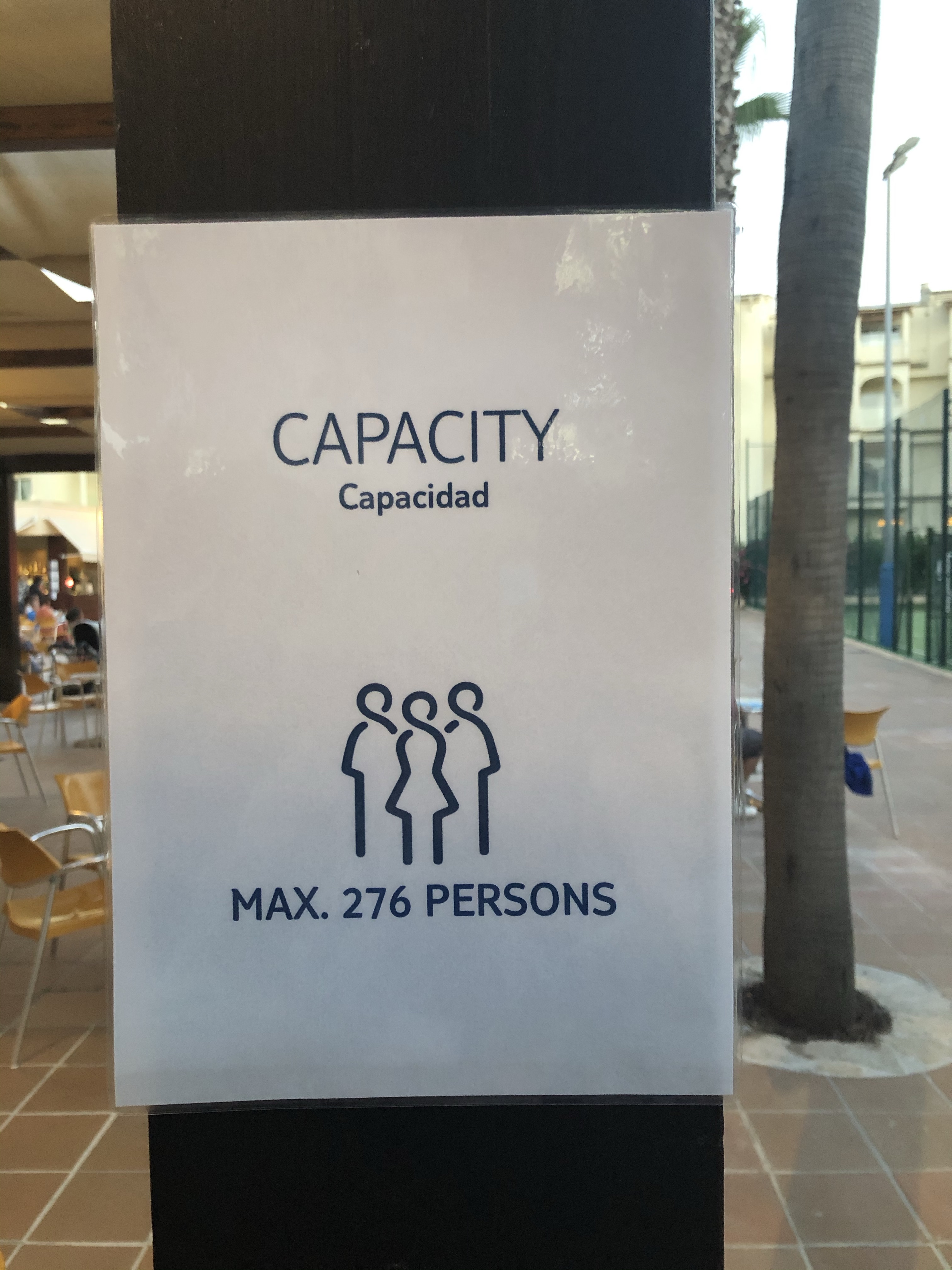 All round the hotel are signs saying how many people are allowed to be in an area at the same time.
