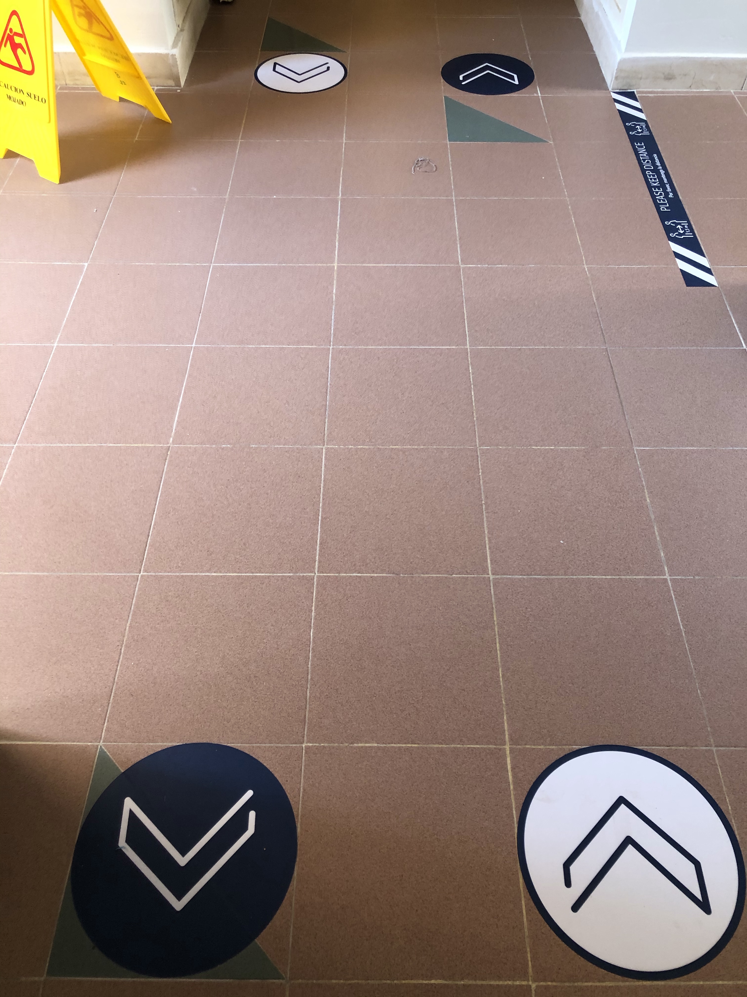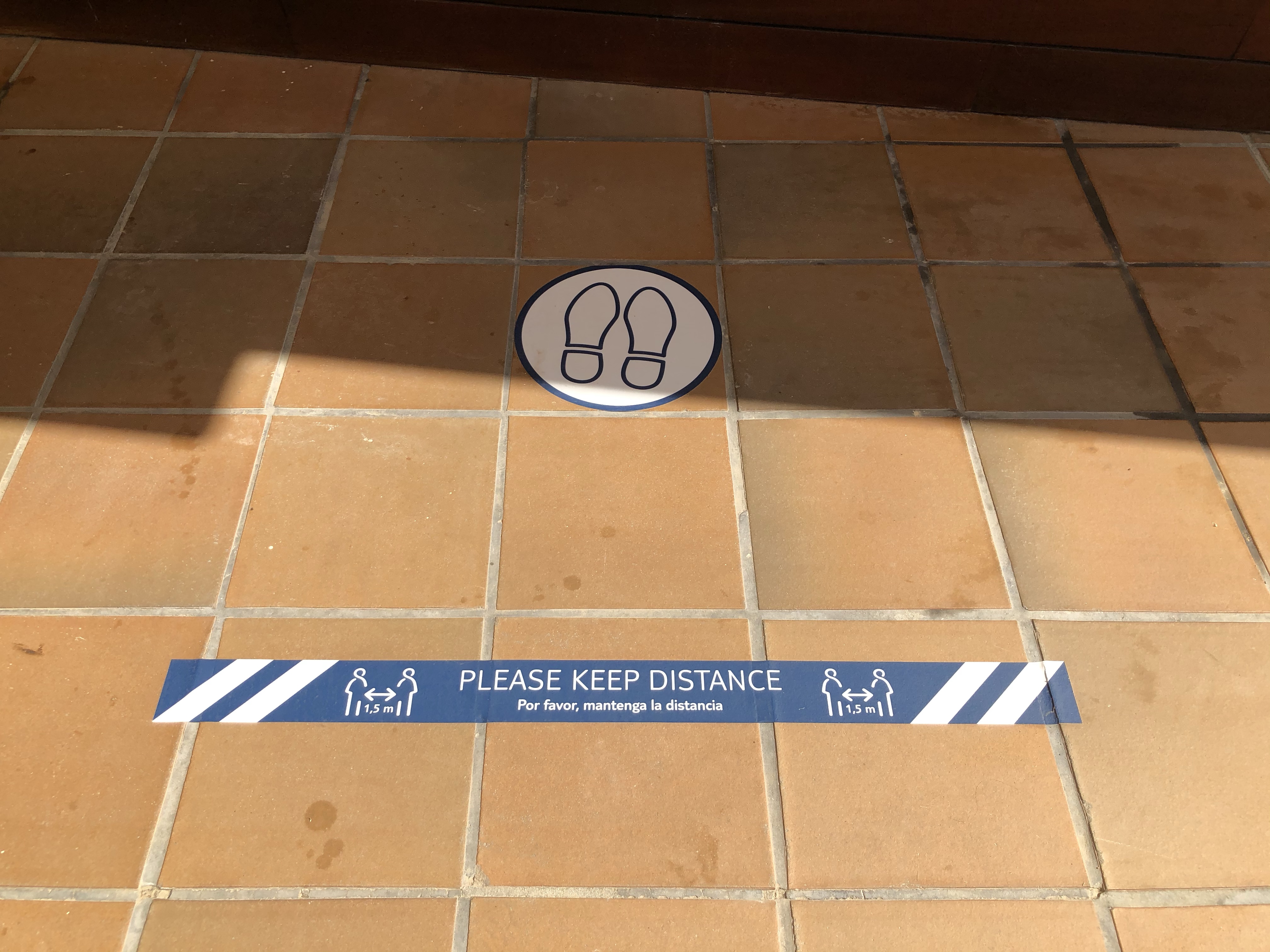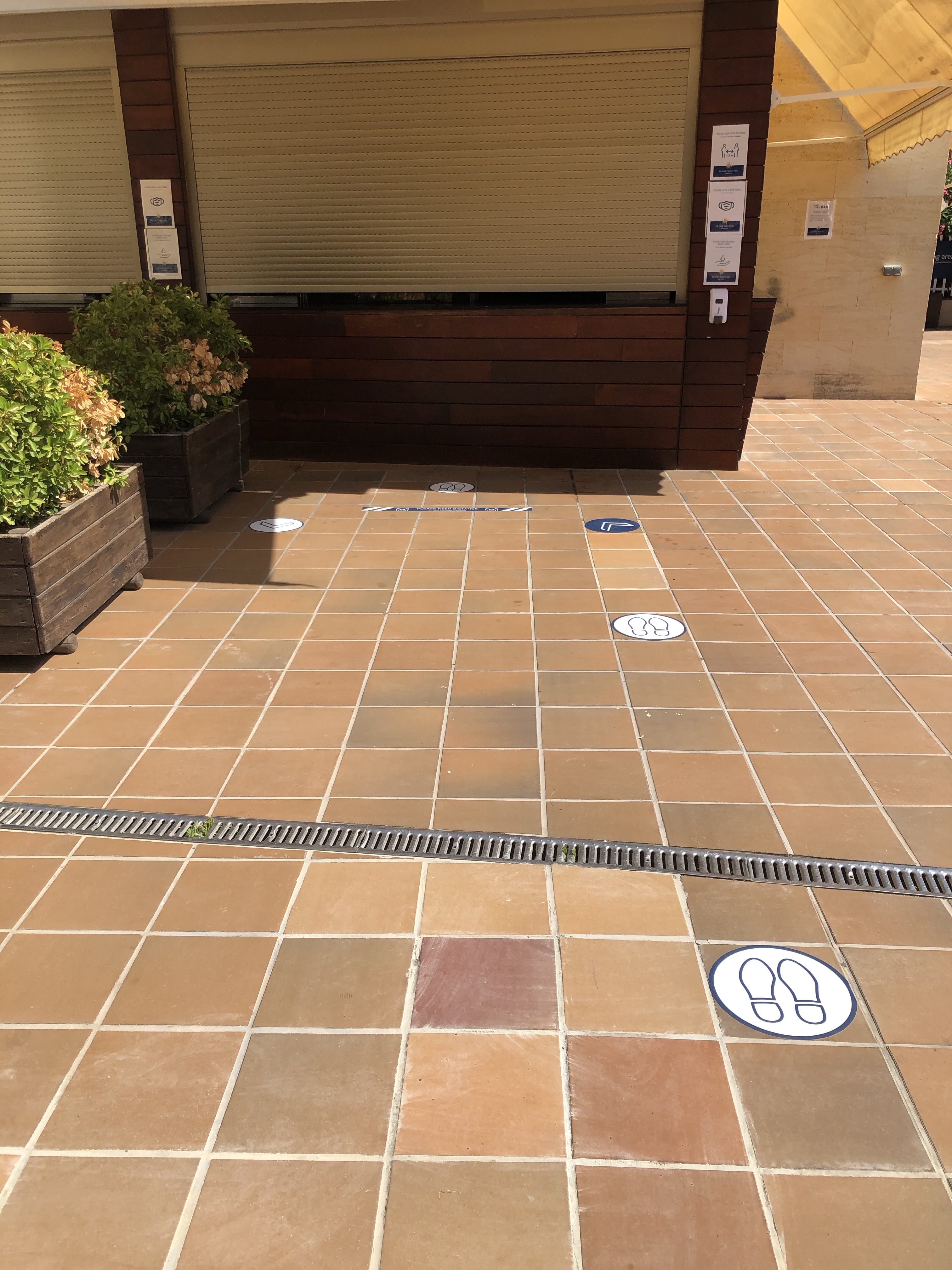 Floor markings at βThe Barβ showing where to waitStand here to be served and keep your distance Floor markings at the pool bar