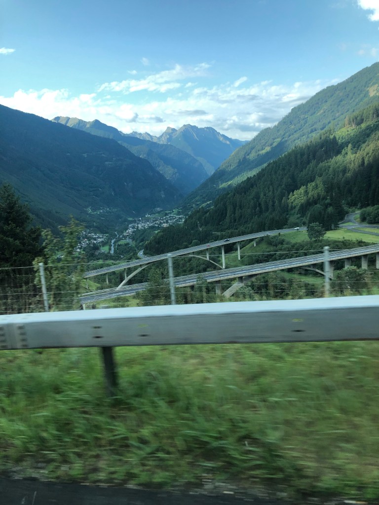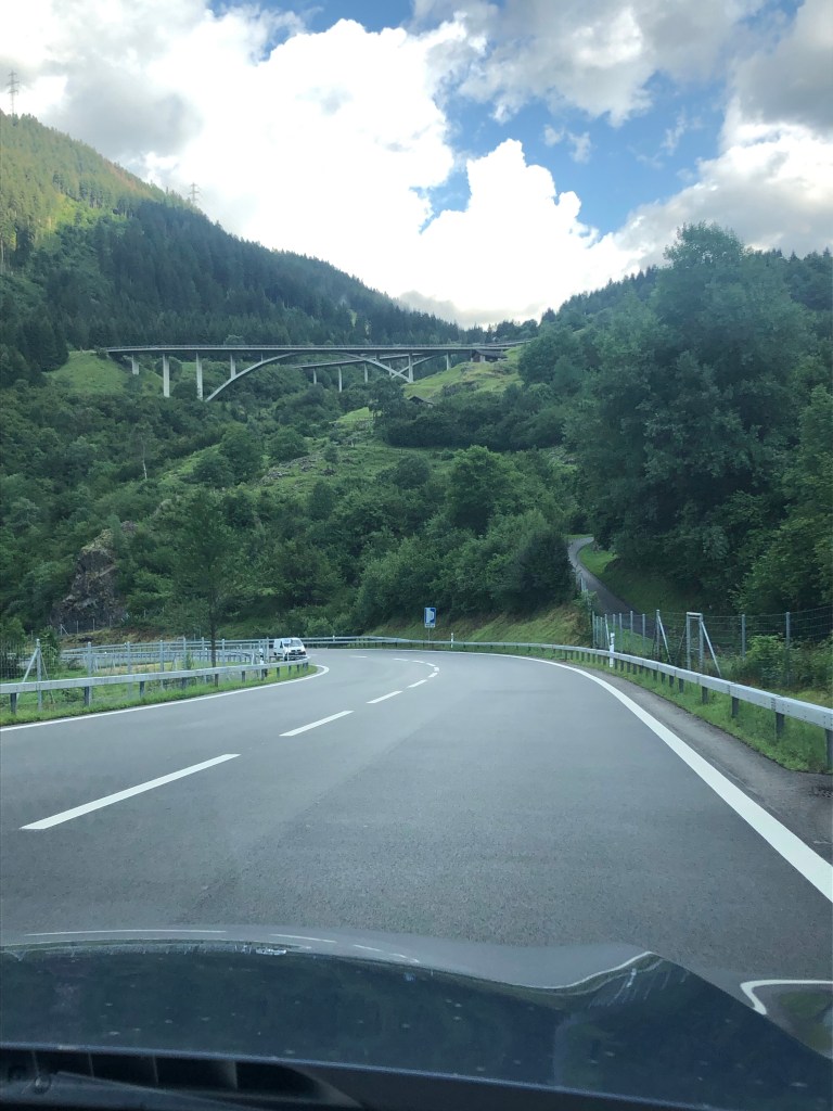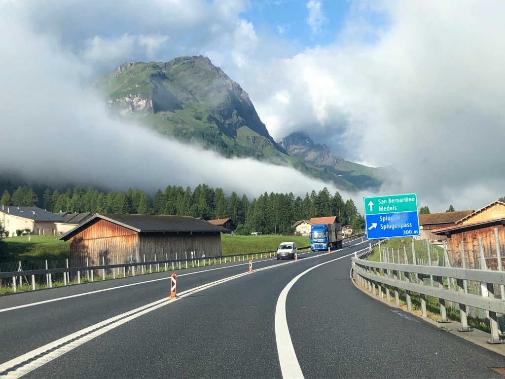 Our journey started with a new experience. Usually we would drive through the San Bernardino tunnel to avoid the queues at the Gotthard tunnel but as we were going east after this, Apple maps recommended going over the SplΓΌgenpass. We had never heard of it so a quick Google image search showed us a road with multiple switchbacks going up to 2100m. Friends had warned us against it but as the weather looked good and we didn’t want to queue at the Italian border or round Milan we thought we would give it a go.