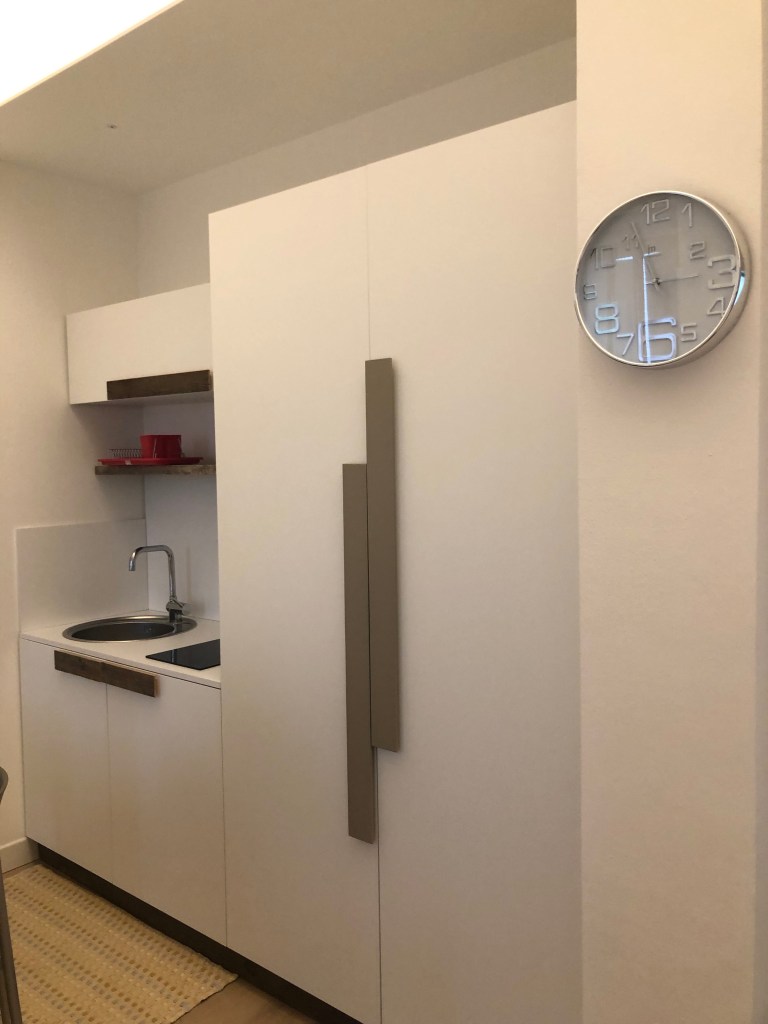 There is a small kitchen area in the bigger room with a two ring hob and all the kitchen equipment needed to make stove top meals. Both rooms had fridges so Bethany had somewhere to store her food purchases too.