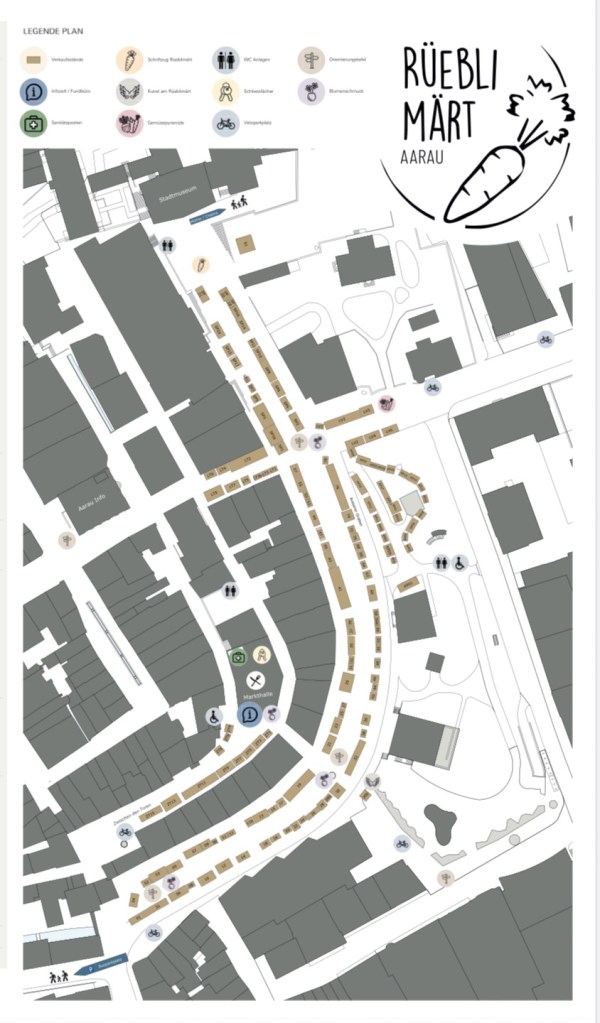 In arrival in Aarau, we started to see signs for the RΓΌeblimΓ€rt parking, so decided to follow these. They lead us round the outside of the town to an open parking area, where people were waiting to show us where to park. We were surprised that the car park still had a lot of space. We had passed a couple of other car parks that were full or almost full on route. There was no charge for parking at this official car park.