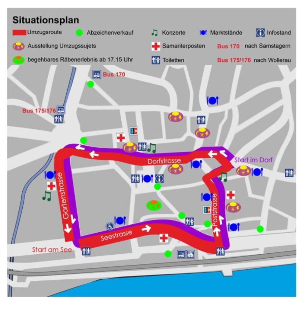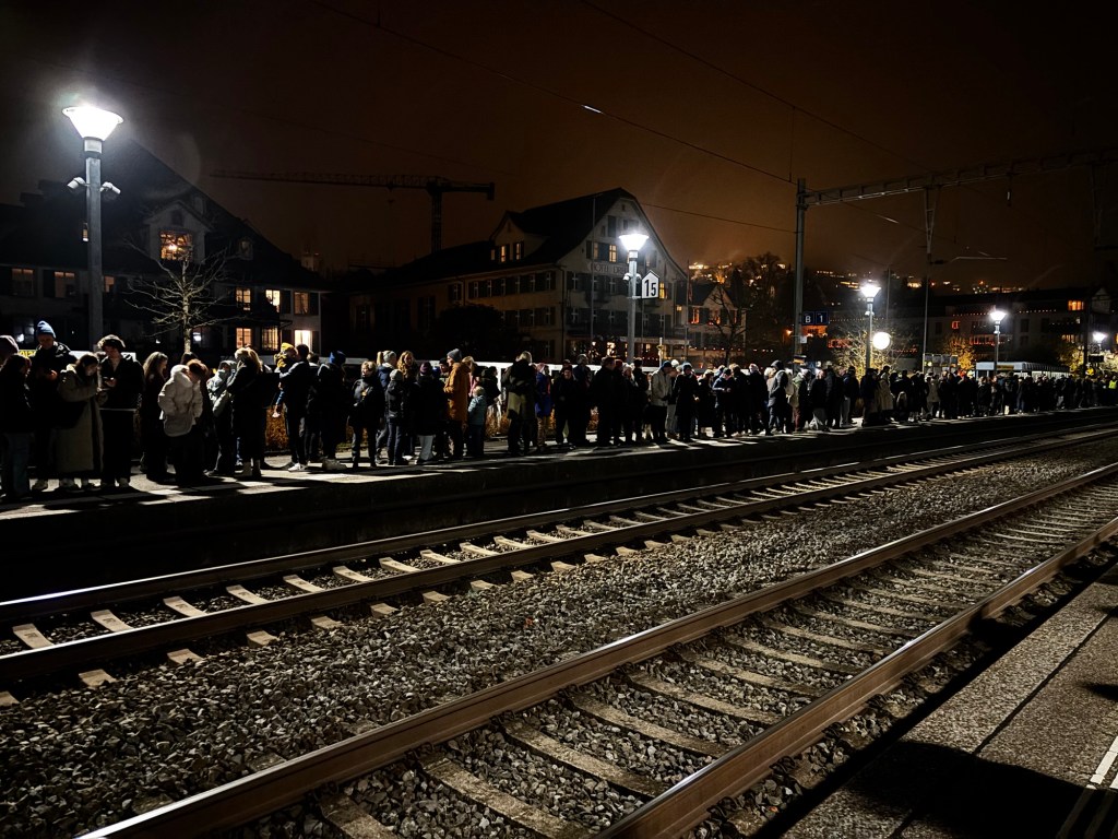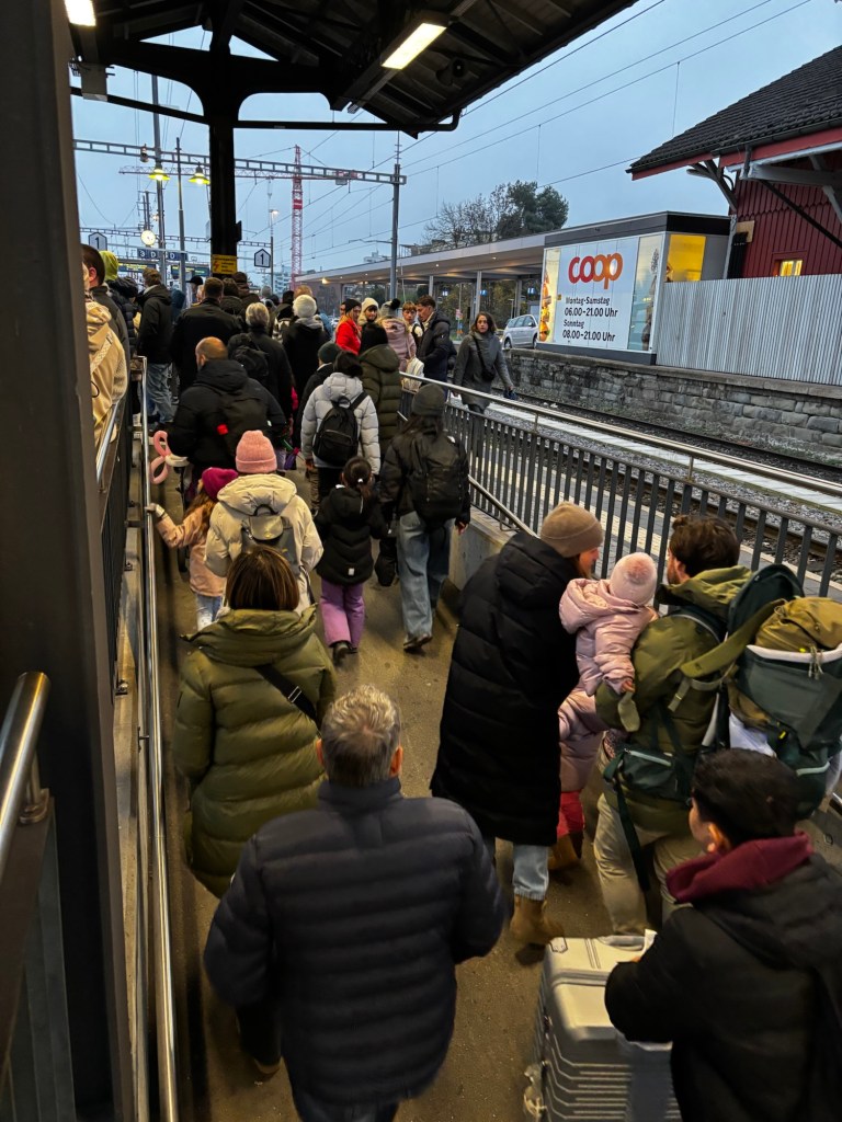 The parade was due to start at 6pm and there was no parking available in Richterwil. We were in Rapperswil at the cheese festival before, so we took the train via PfΓ€ffikon to Richterwil. It was very busy at PfΓ€ffikon when we changed trains.