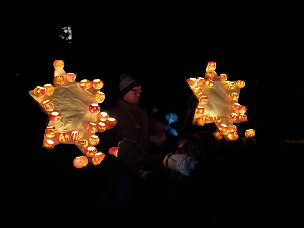 We first came across RΓ€belichtli when Bethany was at primary school in Zumikon. She had told us that she had been carving a turnip into a lantern at school. We were all invited to the RΓ€belichtliumzug (parade of turnip lanterns). After meeting in the village square and lighting all the candles in the turnip lanterns, we set off to walk out of the village to a view point up on the hill above the village, while the children all sang songs together. We were amazed at the time that children aged four to seven years old were allowed to walk around the streets with naked candles.
