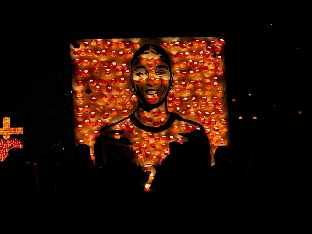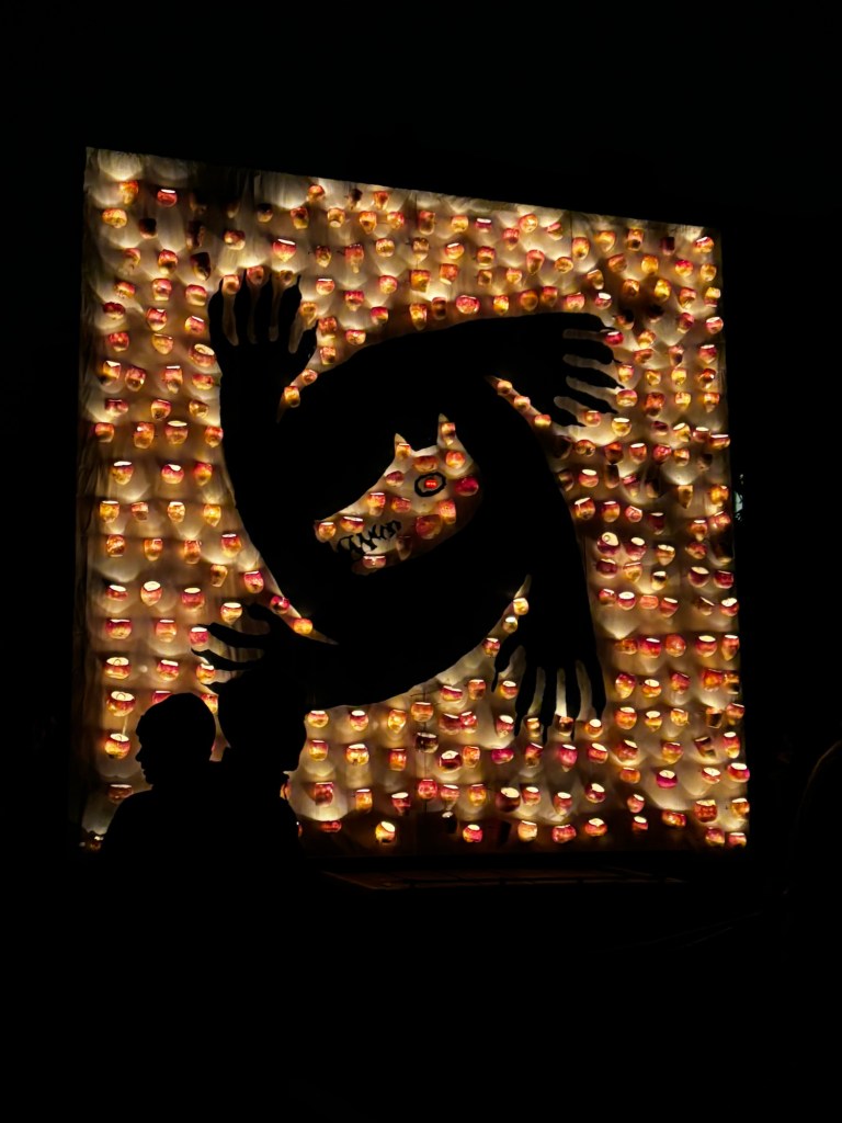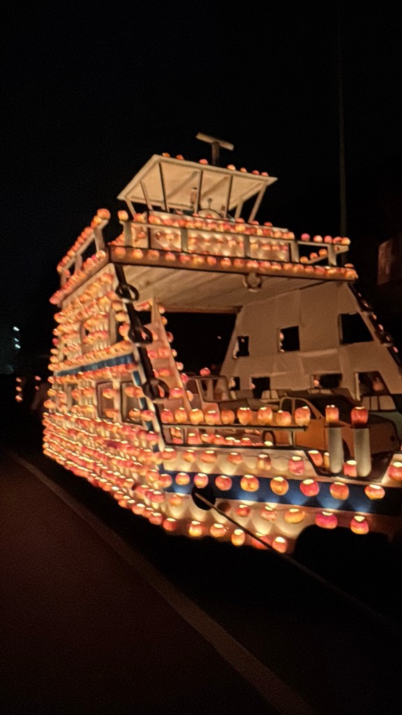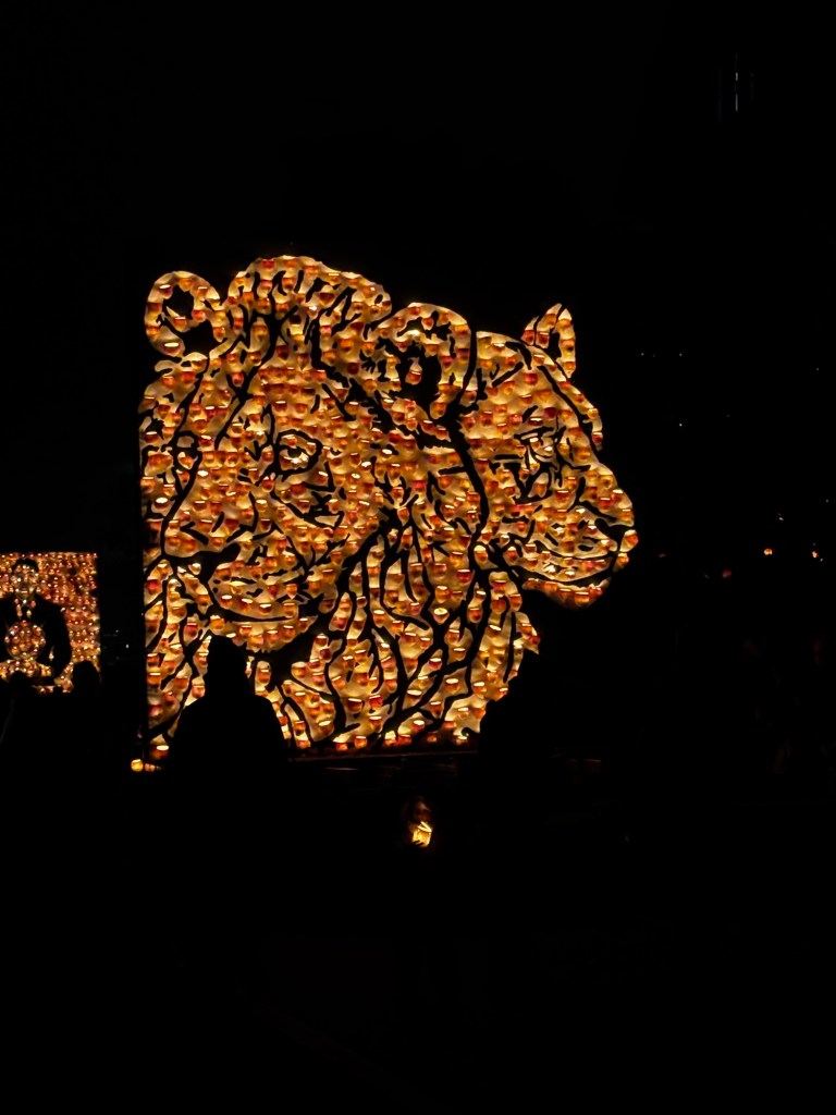 We were standing next to the area where the floats were lighting all the candles. We were able to watch the floats gradually light up.