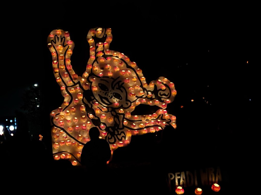 Visitors were asked not to use flashes when taking photographs. With it being so dark the flashes were blinding for the people taking part. As you can see from the video, not everyone got the information. If the parade marshals saw a flash go off they did stop and inform the person. I even saw one marshal take someoneβs phone to show them how to turn the flash off.