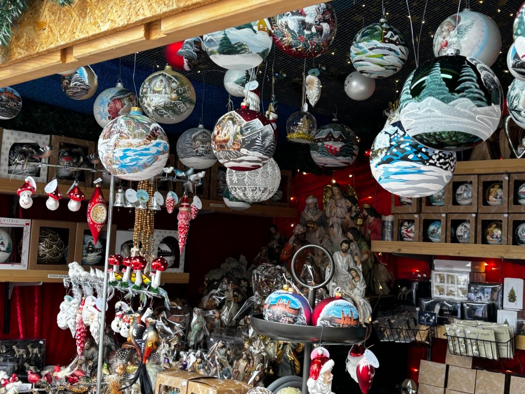 The market stretches from just across the road from the station all the way up to the monastery. Itβs a lovely setting, especially as there had been recent snow, making the background pretty.