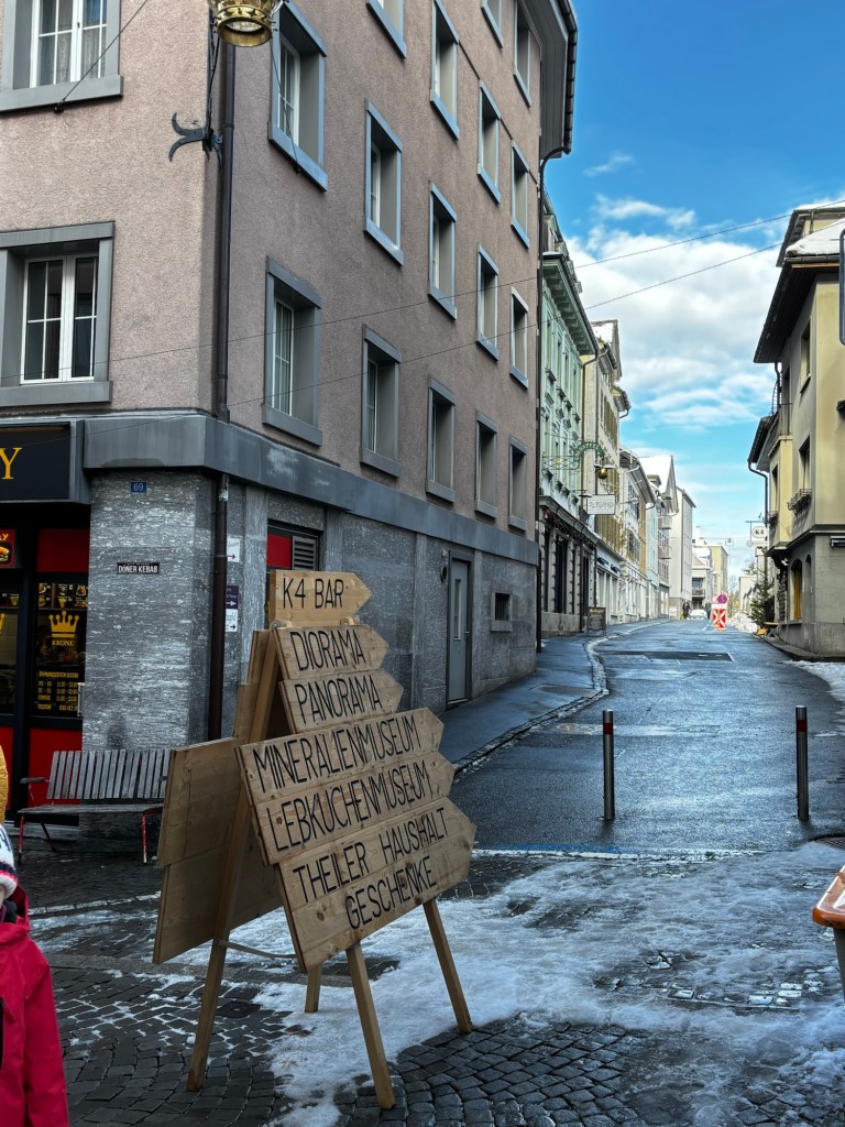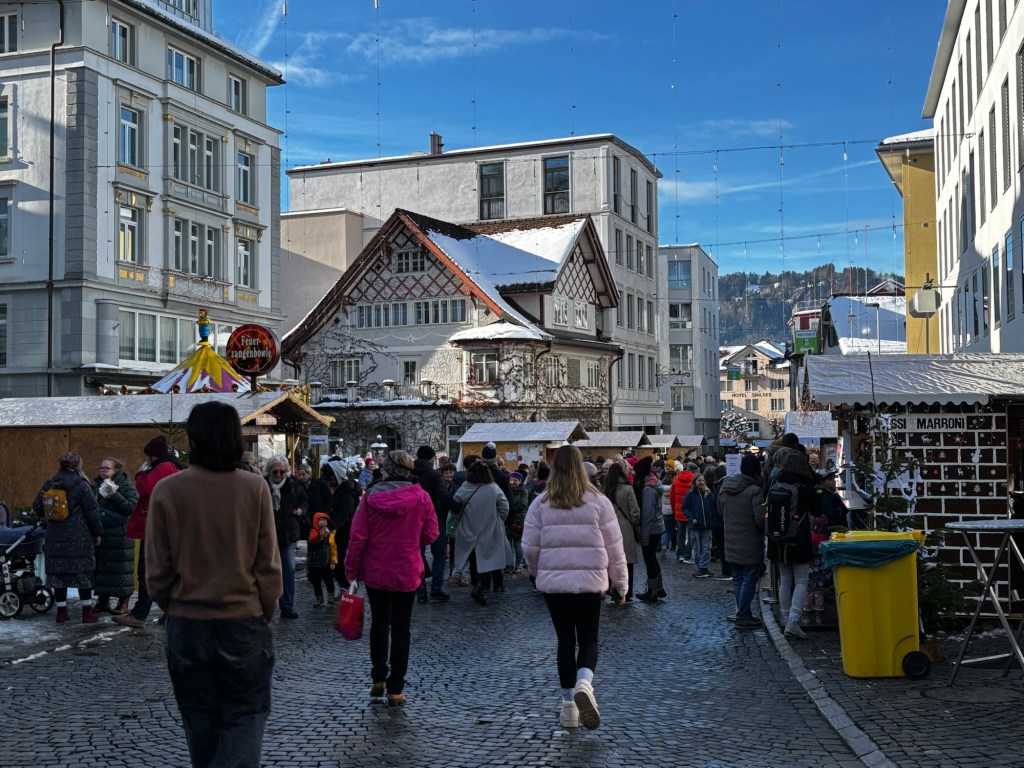 We arrived in Einsiedeln at 10:40am as the market was due to open at 11:00am. I drove towards the car park I knew near the monastery but unfortunately it was only open for stall holders. I drove towards town and followed to parking signs to the car park under Migros. It was one that uses Parking Pay so we could use our card. The car park is undergoing renovations so it was a bit tricky getting in, but when we made it to the lower floor there were plenty of spaces to park. We wrapped up warm and, after a quick toilet stop, we headed off the find the market.