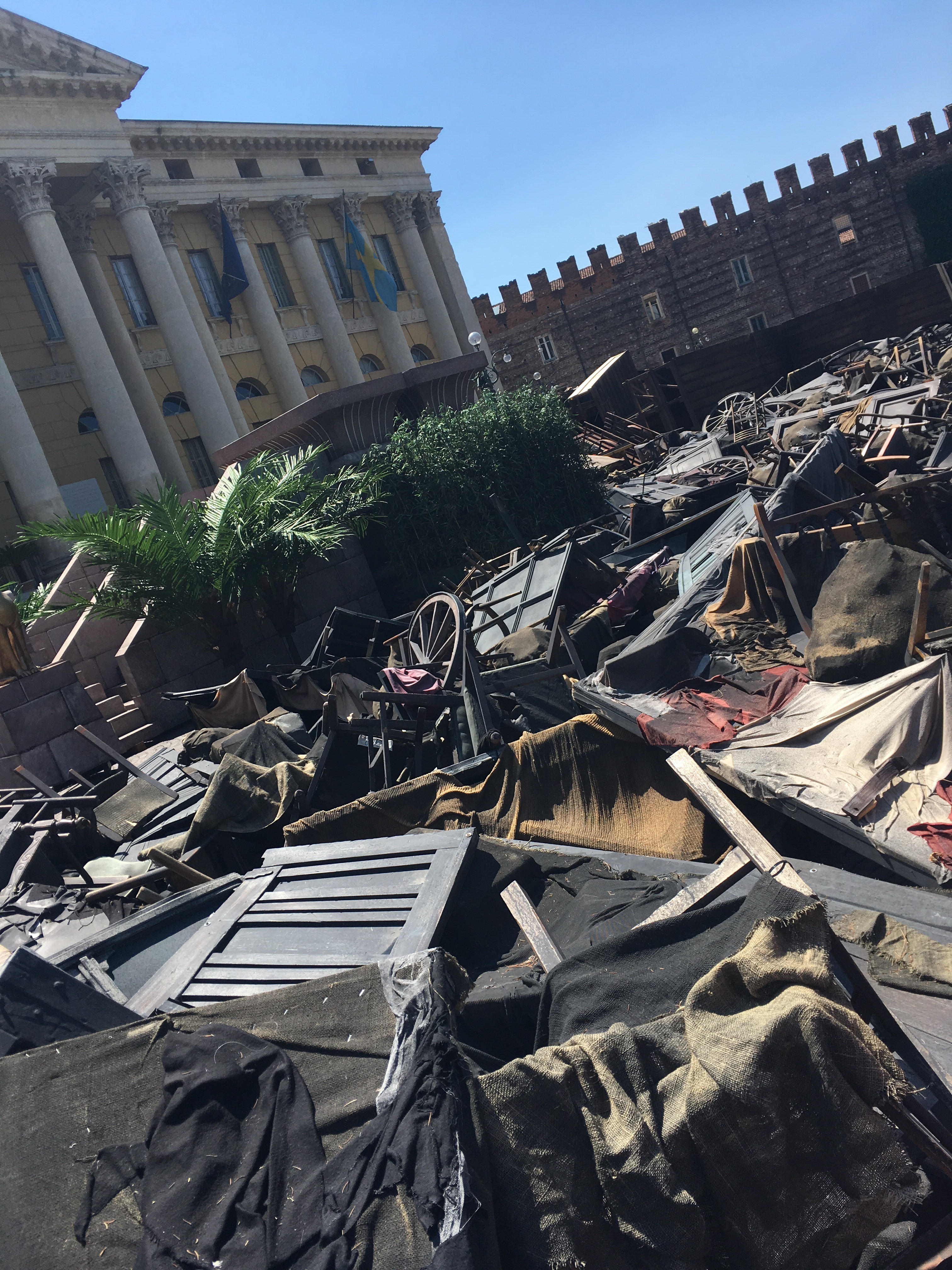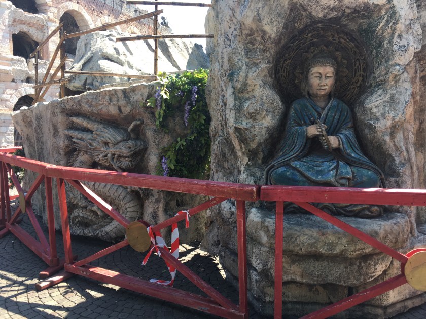 As we looked round Piazza Bra we spotted all the scenery and props for the opera season. See if  you can work out which operas are showing this year.
