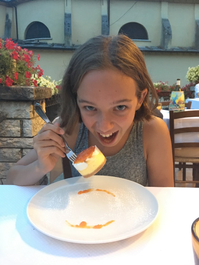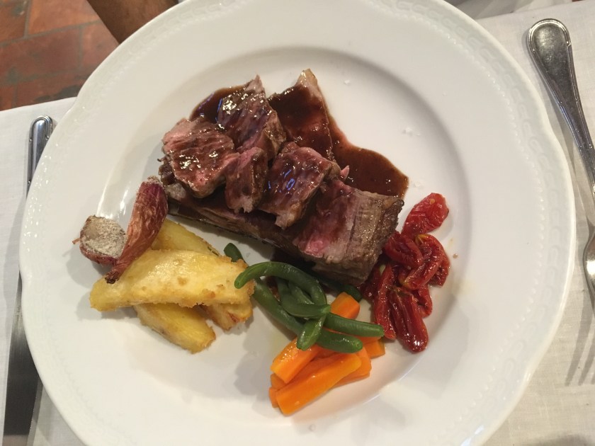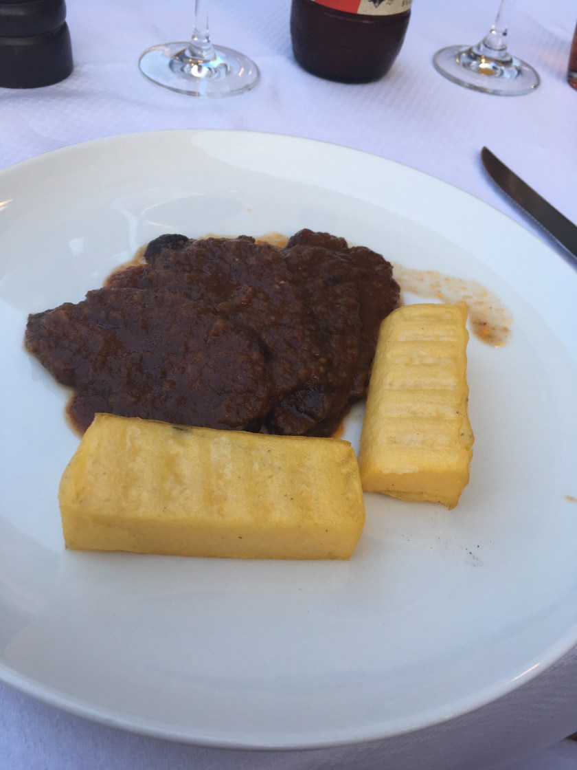 We had to ask the waiter to translate the menu as it was only in Italian and Google translate couldn’t cope either. We all decided to have the ham and cheese starter including ham from Montagnana, where we plan to go later in the week. For main course I chose tortelli filled with cheese, Bethany chose the speciality pasta with ragu and Michael chose the beef cooked in Valpolicella wine.
