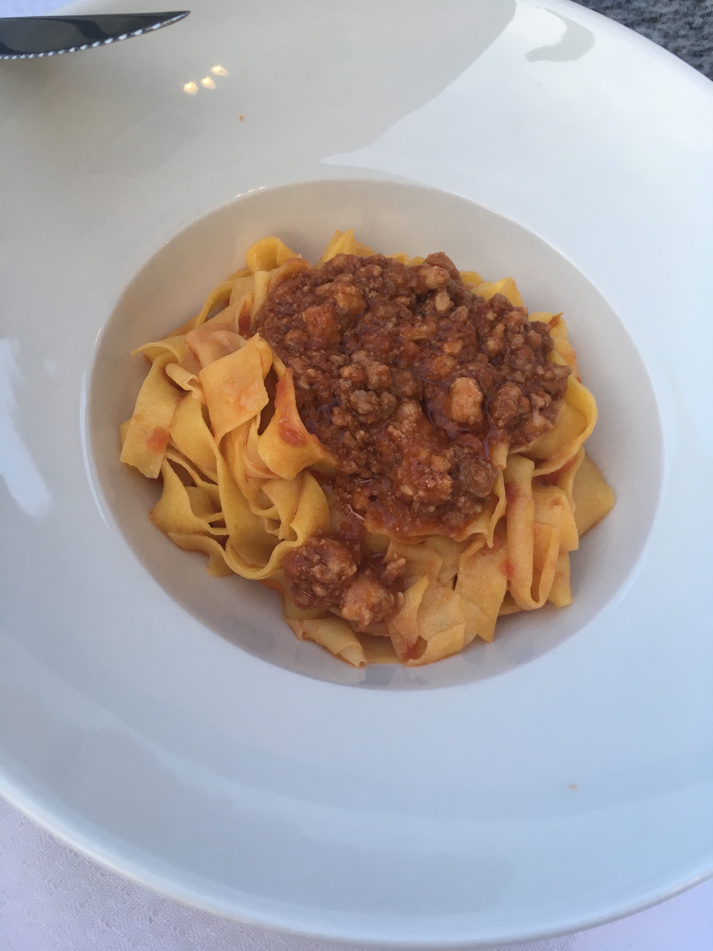 For dinner the owners of the agriturismo had recommended a restaurant in a nearby village. It specialized in its homemade thin tagliatelle pasta with freshly made sauces. It was also up in the hills with stunning views.
