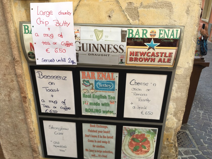 We passed a cafe / pub offering everything the Brit abroad could want, including ‘tea made with boiling water’.