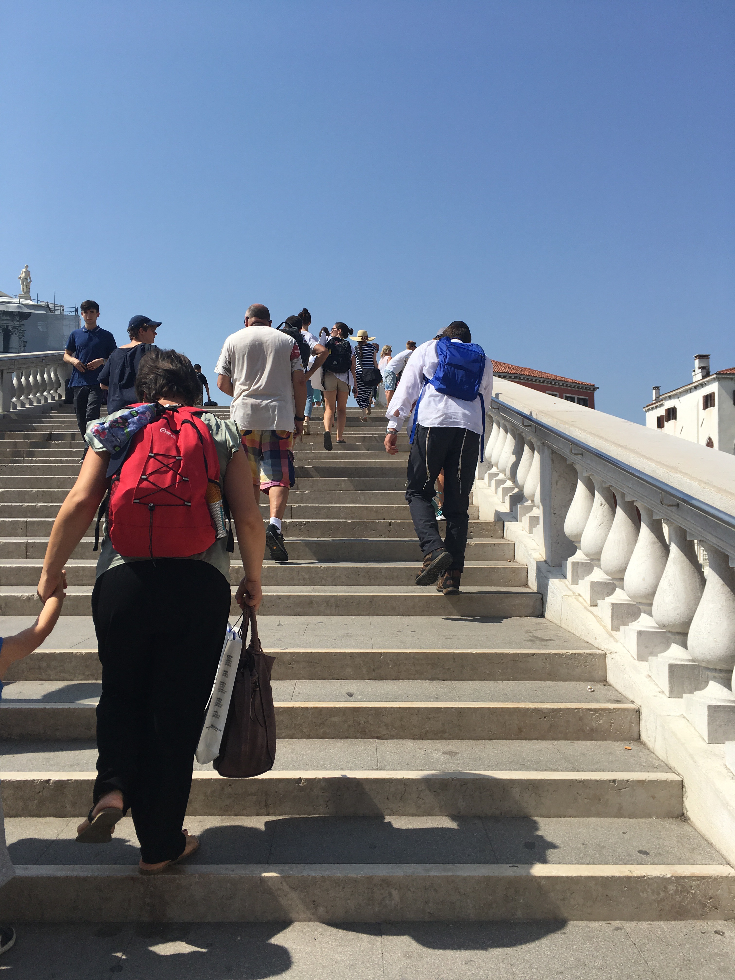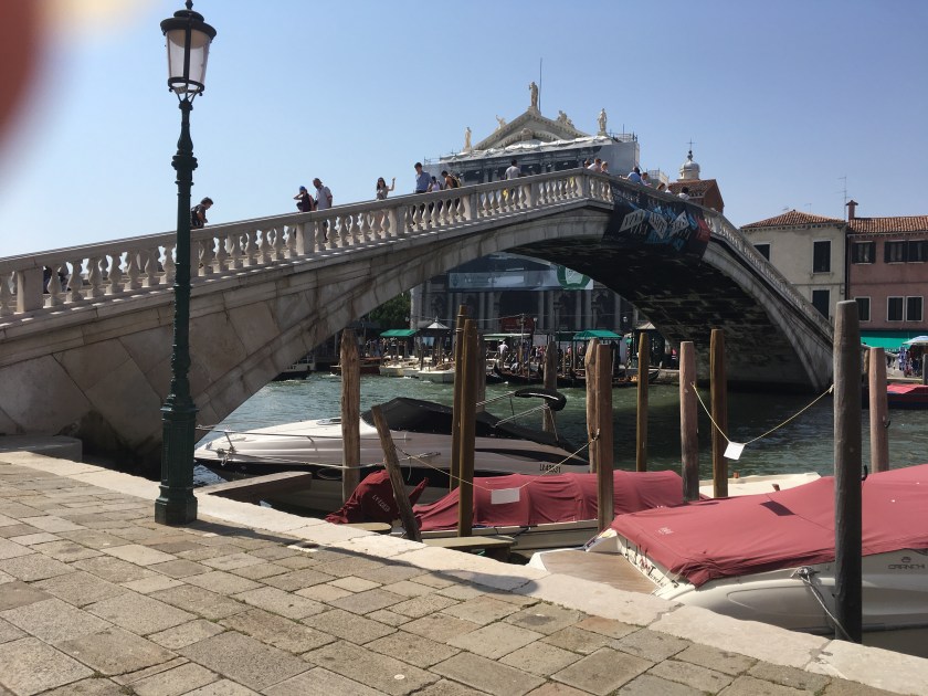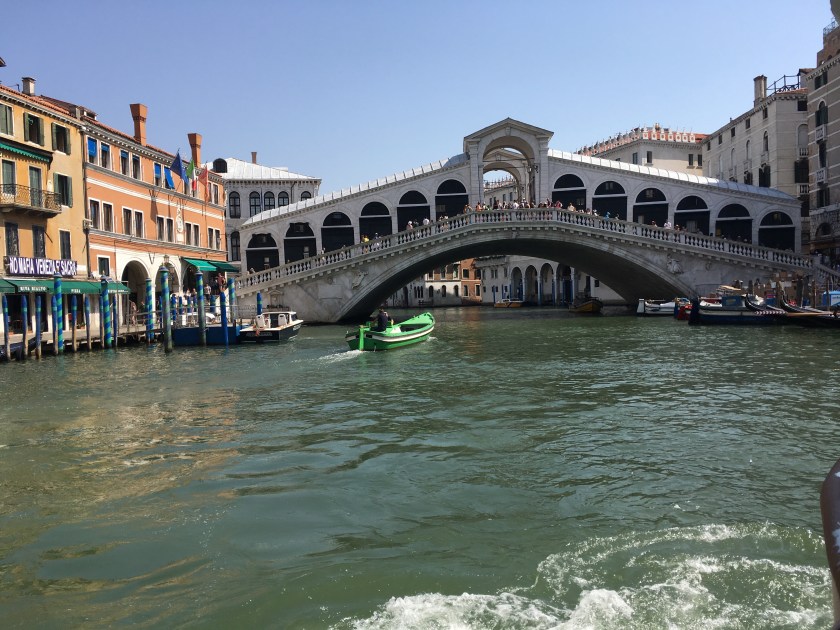 We passed under the famous Rialto Bridge and then under the wooden Academia Bridge.