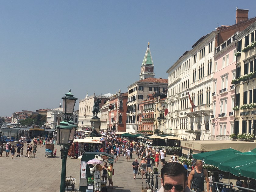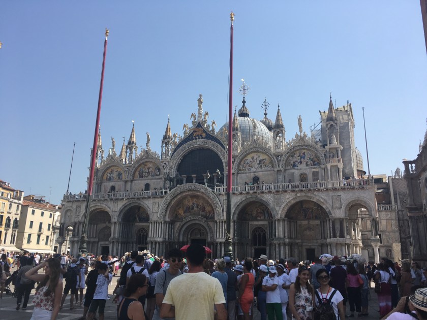 We decided to take a vaporetto to St Mark’s Square. The best views are supposed to be from the canals and this way we would see most of the Grand Canal and its sights. The vaporetto was crowded but eventually we all got seats.