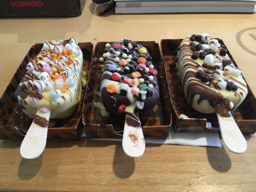 It was funny seeing the ‘naked’ Magnums getting covered in chocolate and then have the chosen toppings added.