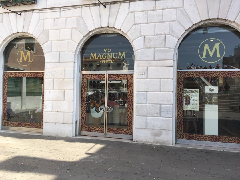 Friends of ours had been in Venice recently and had mentioned the Magnum Pleasure Store. With two ice cream lovers in tow we had to visit. Luckily it was across the canal from the train station and not very busy.