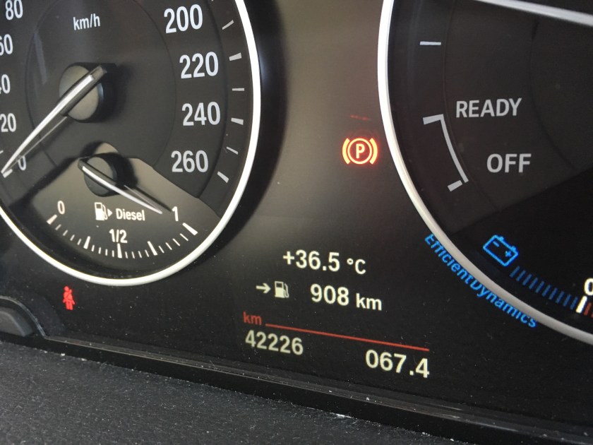 As it was so hot we decided to get our windscreen cover out to stop the steering wheel and front seats from getting too hot. We had backed right up to the wall so this was the only way to get it out of the boot!